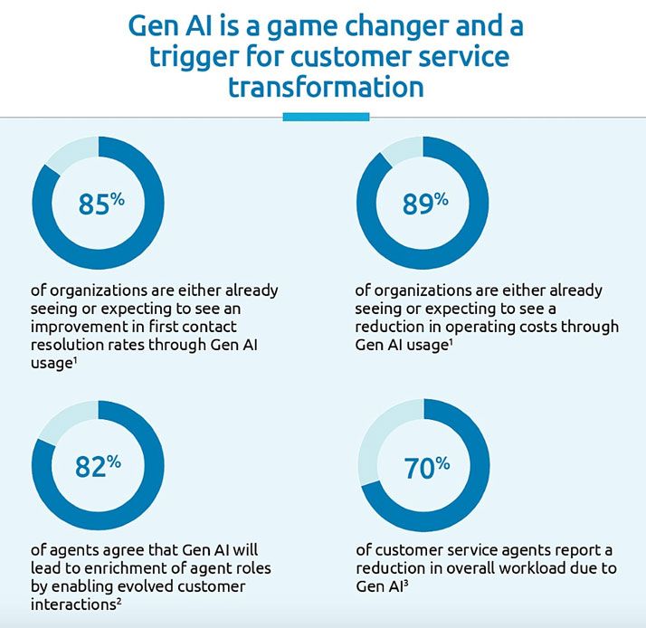 73% dos agentes afirmam que Gen AI reduziu tarefas repetitivas, permitindo mais foco em interações estratégicas.