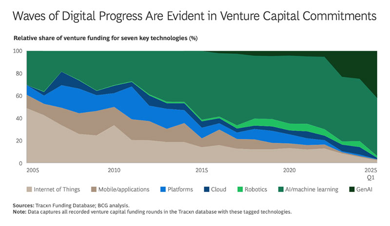 Cloud Computing e Internet das Coisas (IoT) possibilitaram novos modelos de negócios. A Robótica possibilitou novas técnicas de fabricação flexíveis. A IA tornou possíveis decisões de P&D mais baseadas em dados e novas propostas de valor dinâmicas, como a personalização. Todos esses desenvolvimentos redefiniram o estado da arte da análise de inovação. Agora, a GenAI e a IA Agêntica prometem impulsionar a ideação e transformar o modelo de talentos para a inovação.
