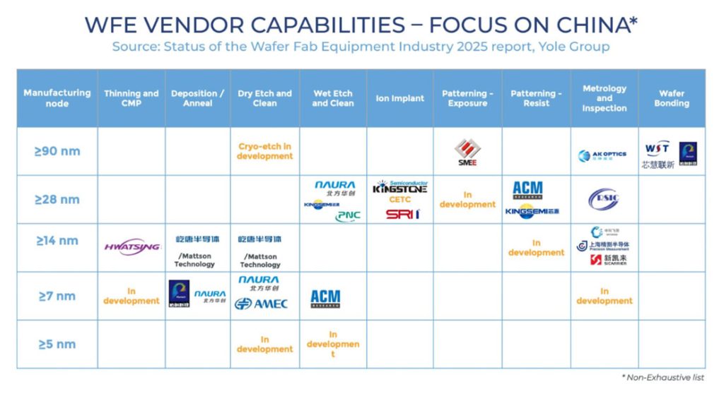 A Intel ainda está lutando para voltar à vanguarda com as tecnologias de fabricação 18A e 14A. Conseguirá? Os próximos 2 a 3 anos serão decisivos. Quão inovadora a China será não só no design, mas na também na fabricação local de semicondutores? O último relatório do Yole Group, “Status of the Wafer Fab Equipment Industry 2025”, revela o surgimento de uma série de fornecedores de equipamentos para a fabricação de semicondutores, ainda desconhecidos fora da China.