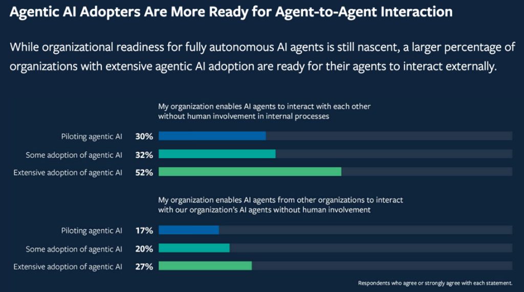 Um total de 2.102 respondentes, abrangendo 21 setores e 116 países, participaram da pesquisa, e os resultados revelam que a IA Agêntica está emergindo rapidamente nas empresas: 35% das organizações já começaram a utilizá-la; e outras 44% planejam adotá-la em breve. Por outro lado, 47% indicam que ainda não possuem uma estratégia definida.