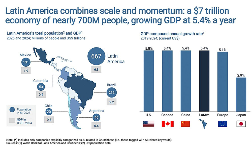 Os pilares da transformação digital na América Latina estão se alinhando para um novo ciclo de crescimento. A região combina uma economia de US$ 6,8 trilhões, com PIB crescendo a 5,4% ao ano (2019-2024), superando a média dos Estados Unidos (2,9%) e Europa (2,8%). Para dar o tão esperado salto, precisa reduzir a informalidade (que chega a 33% do PIB em alguns países), desemprego e baixa produtividade em relação aos padrões. A boa notícia: o processo de digitalização pode ser usado como alavanca de eficiência e a tecnologia para reduzir a lacuna.