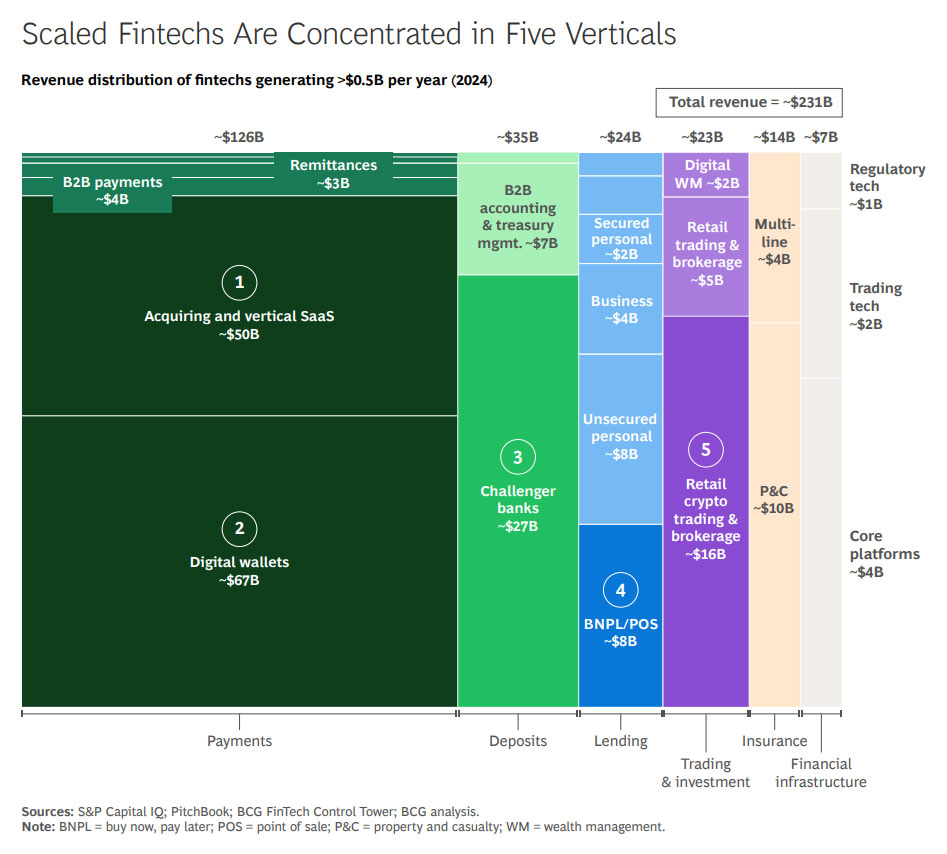 O estudo do BCG aponta seis áreas de alto potencial para fintechs nos próximos cinco anos:
